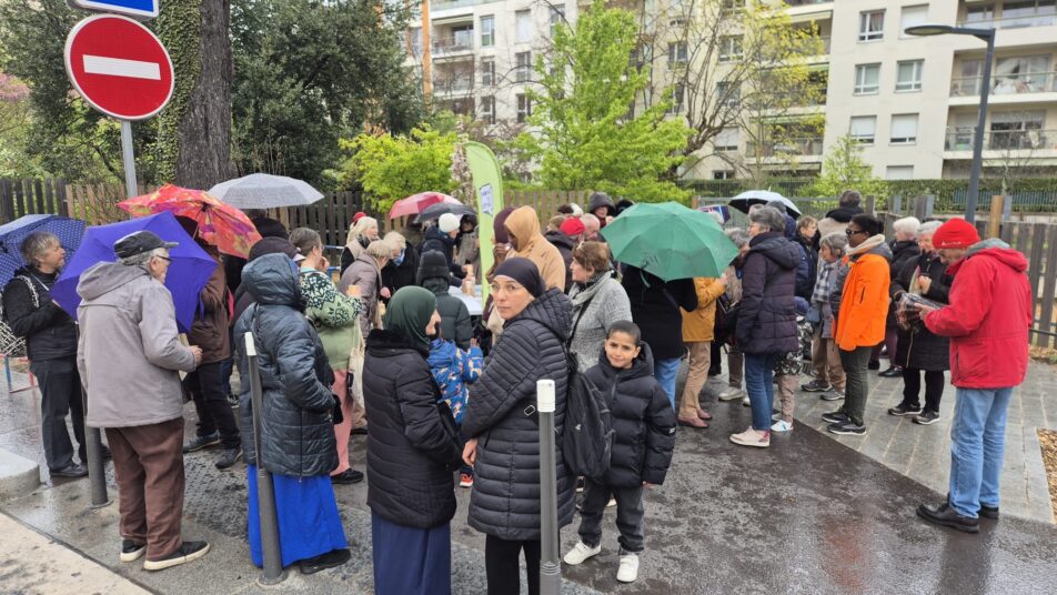 Certains ont cheminé de l’arrêt Saint-Exupéry/Jaurès au parc Vaclav Havel, ce qui leur a permis d’admirer la perspective : rues Florian, Verlaine. Après cette courte balade, nous avons retrouvé le reste du groupe au Parc Vaclav-Havel pour une petite pause, rappeler l’histoire de ce lieu (ancienne propriété de la famille Fleury-Papillon, l’acquisition par la ville pour en faire un jardin pédagogique et la mobilisation des riverains pour préserver le grand cèdre… ) A l’occasion du projet T6, les habitants ont rappelé que le cèdre devait être préservé…malgré l’étroitesse de la rue Florian… d’où l’arrêt Tolstoi Verlaine situé de part et d’autre du cours Tolstoi.